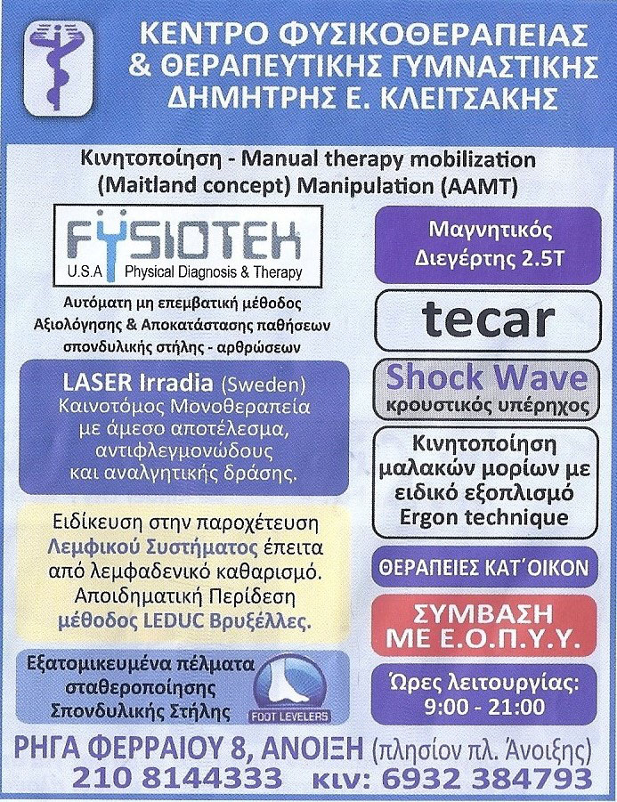 Κέντρο Φυσικοθεραπείας - Δημήτρης Κλειτσάκης
